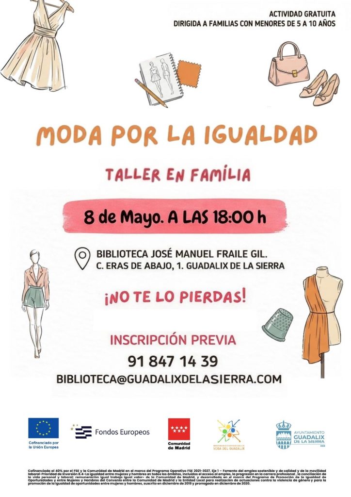 «Os invitamos a participar en el taller en familia «MODA POR LA IGUALDAD» Taller familiar donde comprobaremos cómo ha ido evolucionando la moda a lo largo de la historia hacia propuestas más inclusivas, donde las prendas ya no están estrictamente definidas para hombres o mujeres. Haremos una manualidad mostrando que la moda es para todos y todas. !Te esperamos¡